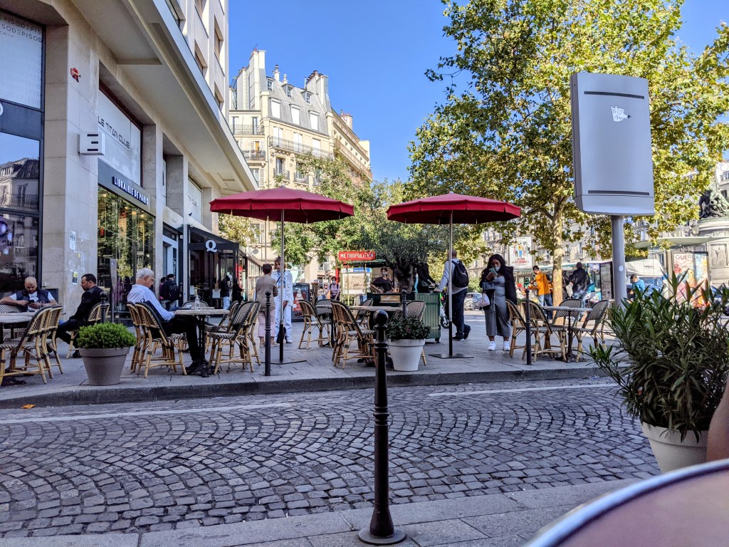 There’s something magical and unique about eating at an outside table and watching street life in Paris.