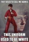 If the hero is a tough guy in the end, the best story shows him start out weak. Only after he suffers and sacrifices does he prevail (THE KARATE KID), and not necessarily by wining (ROCKY).